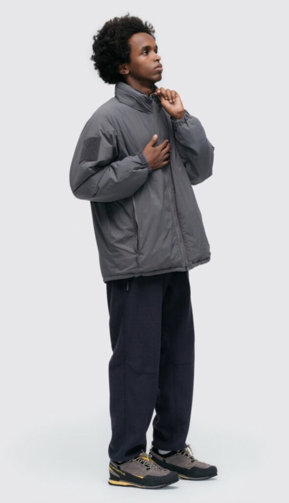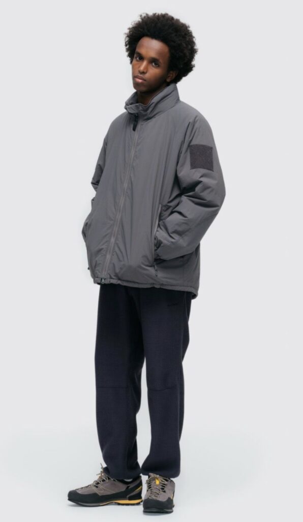 アメリカ軍の極寒冷地用アウターECWCS LEVEL7 HAPPY SUITSをベースにした中綿入りジャケット。TYPE2はオリジナルにデザインやサイズ感を近づけたモデルになっておりオーバーサイズながら膨らみすぎないシルエットと表面のロゴを入省いたシンプルなデザインが特徴。