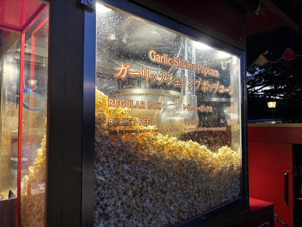 ポップコーンはキャラメル、ガーリックシュリンプを堪能